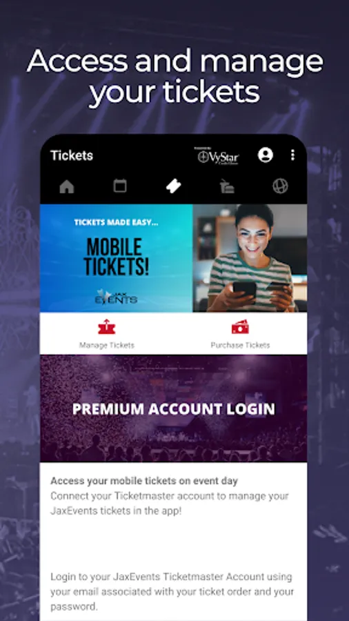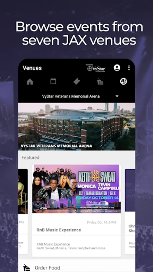 Stay up to date with new events, purchase and store your tickets in the mobile wallet, order food from concessions, and sign up for notifications to get exclusive offers and day-of-show information.