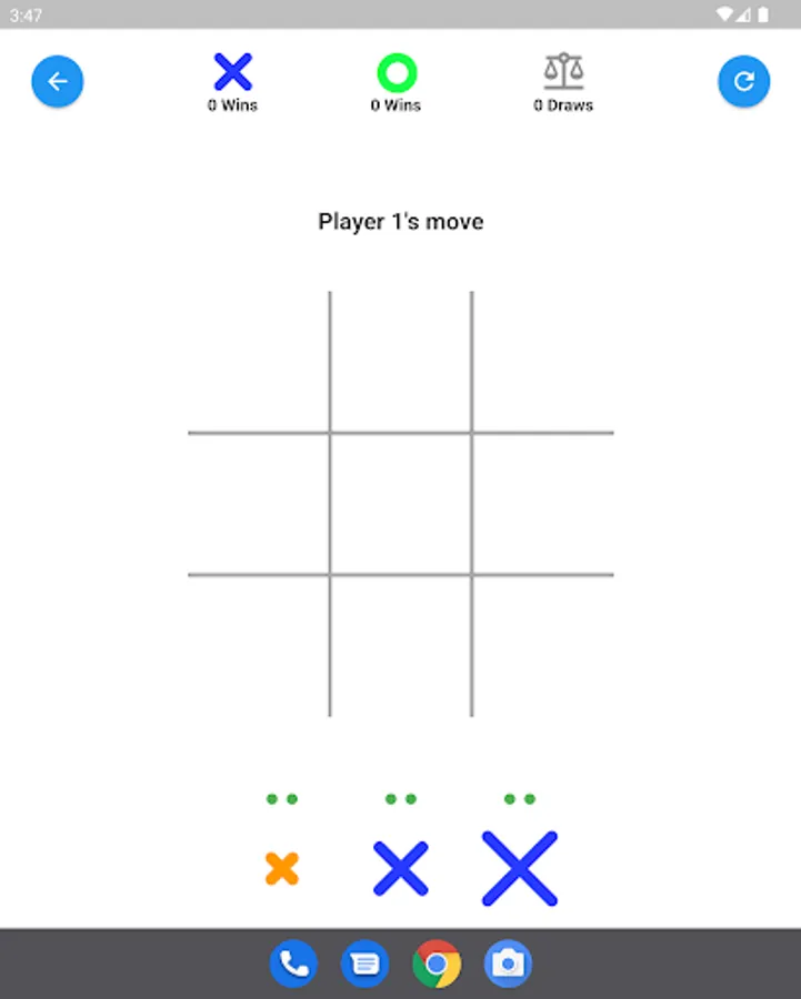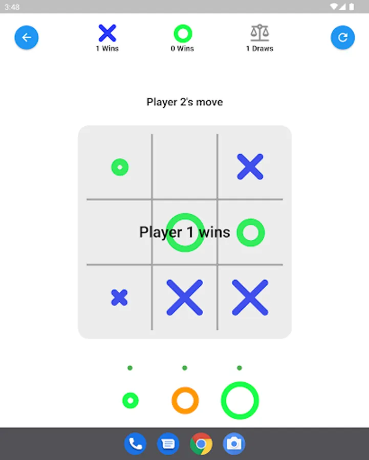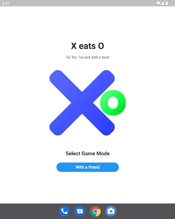 X eats O is a tic-tac-toe based game where players will still try to get 3 of their moves in a row but with the added strategy of using 3 different sized pieces. Larger pieces are able to "eat" smaller pieces from the other player and replace them on the board.