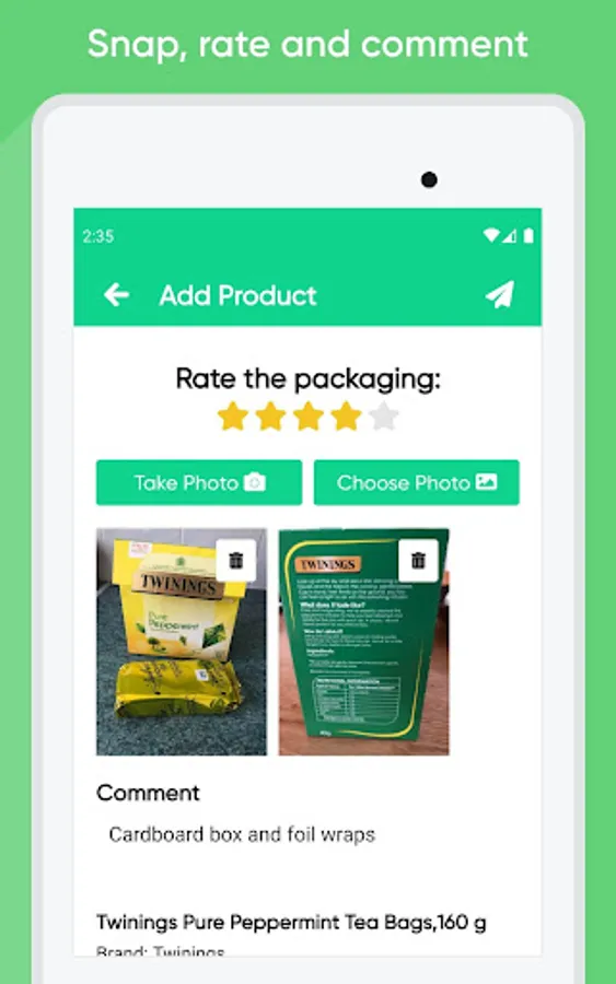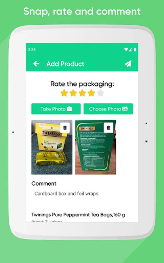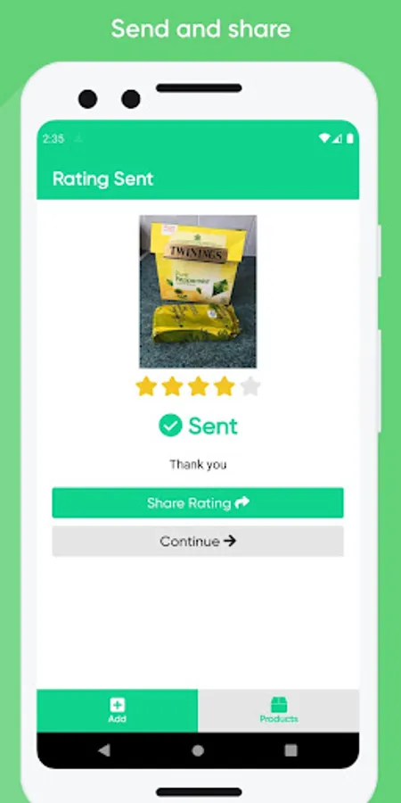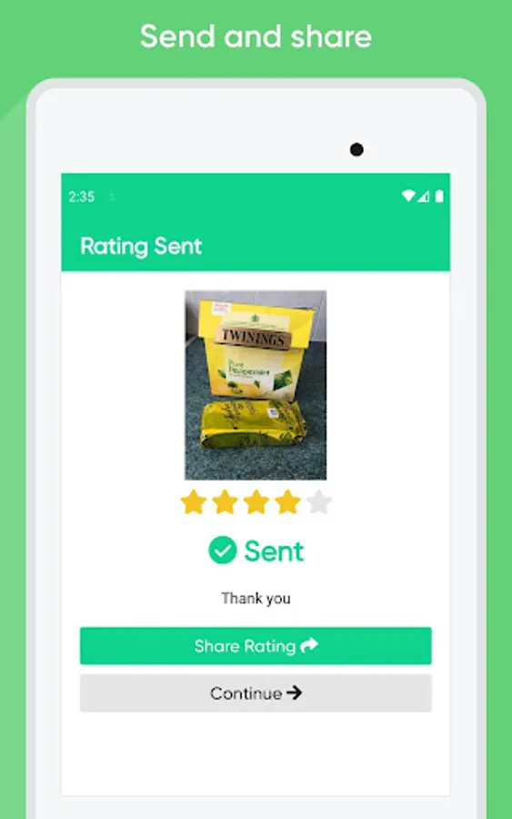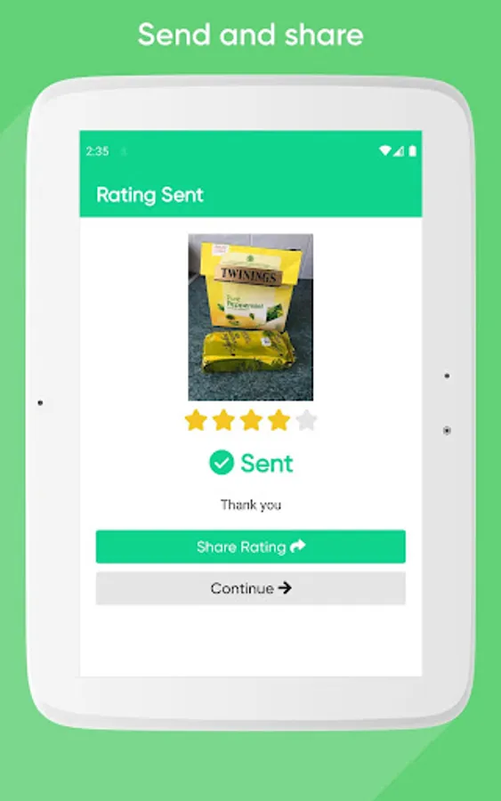 Add photos of the product, select your rating, enter your comments and tap Send. You can let the world know by sharing your rating on social media too!
