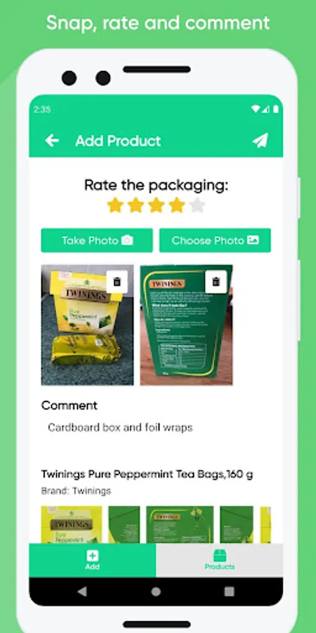 SnapPack lets you have your say. Tell manufacturers exactly what you think! How should they improve their products and packaging? Send them your rating in a few taps.