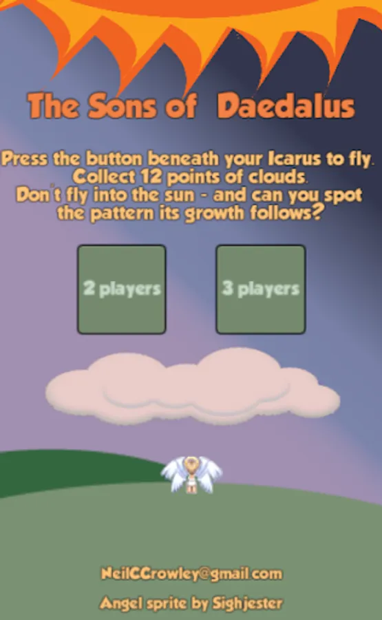 This is a two or three-player game played on one phone. Fly higher than your opponent to catch the falling clouds before she does, but don't fly into the sun!