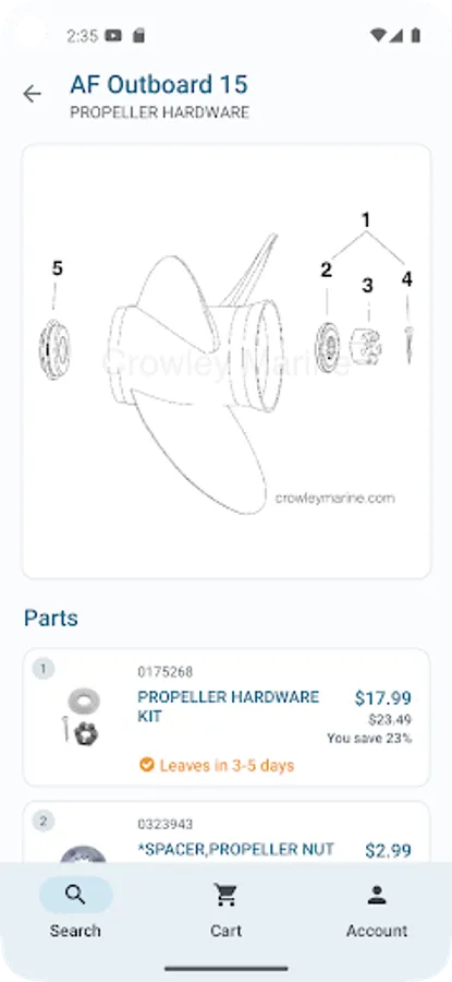 The Crowley Marine app is the easiest way to lookup spare OEM parts for your outboard motor. Whether you have Johnson, Evinrude, Yamaha, Mercury or Suzuki you can find parts diagrams, product photos, tech articles and more.
