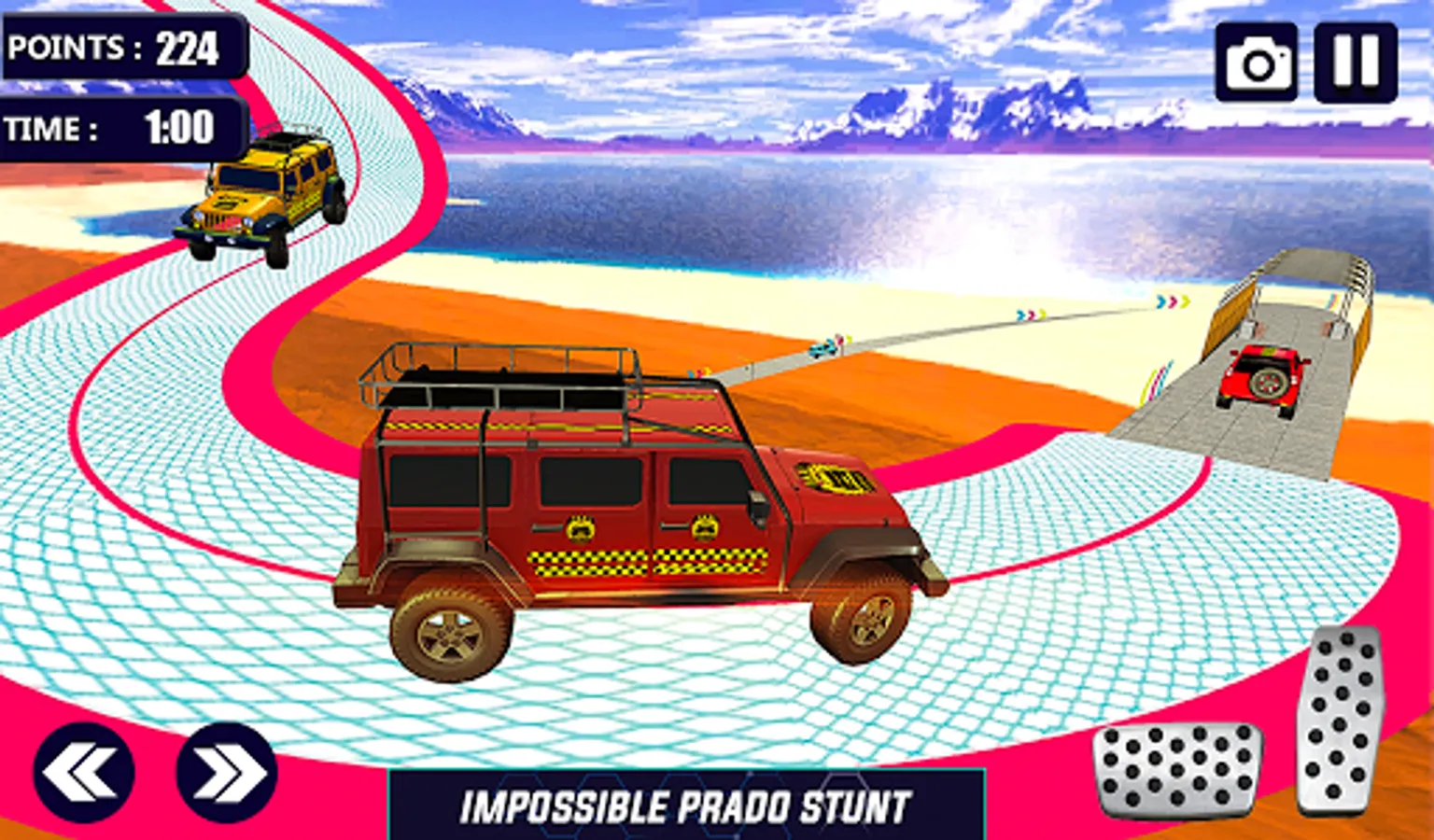 These are some of the remarkable features of Prado Taxi Car Impossible Tracks Crazy Car Stunts: