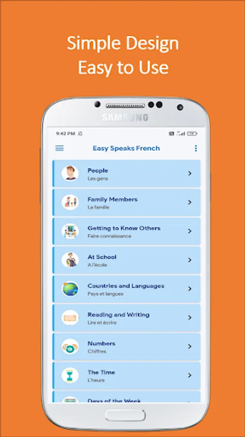 Start learning French quickly and effectively with Easy Speak French . In just minutes you’ll start memorizing core French words, form sentences and learn to speak French phrases. You’ll feel like having your own French language tutor in your pocket.