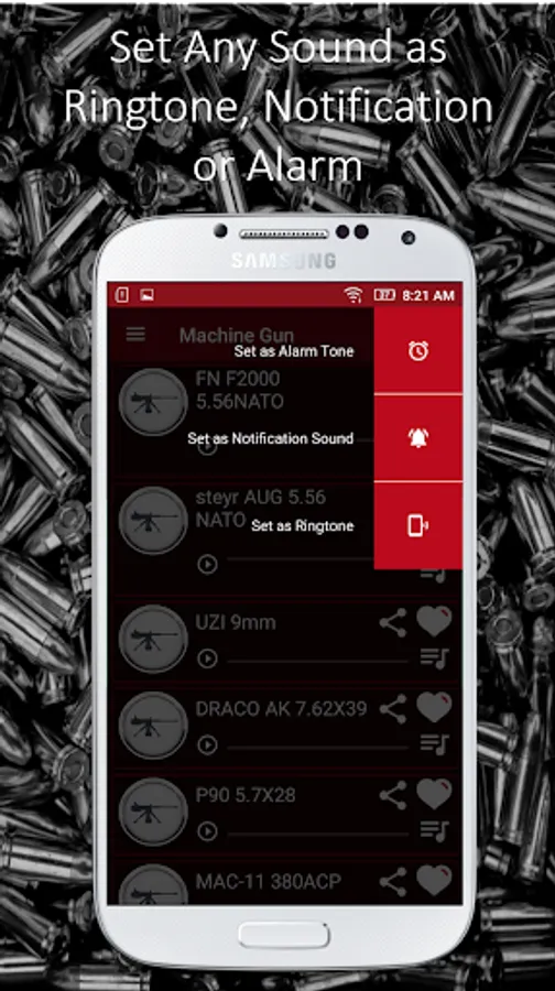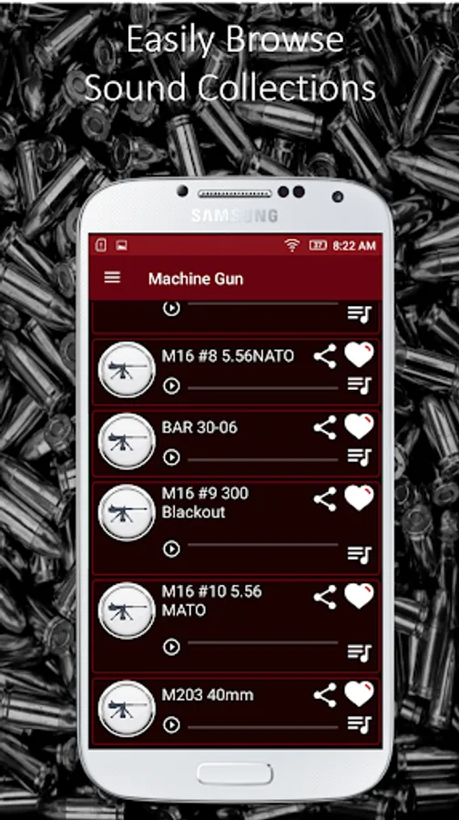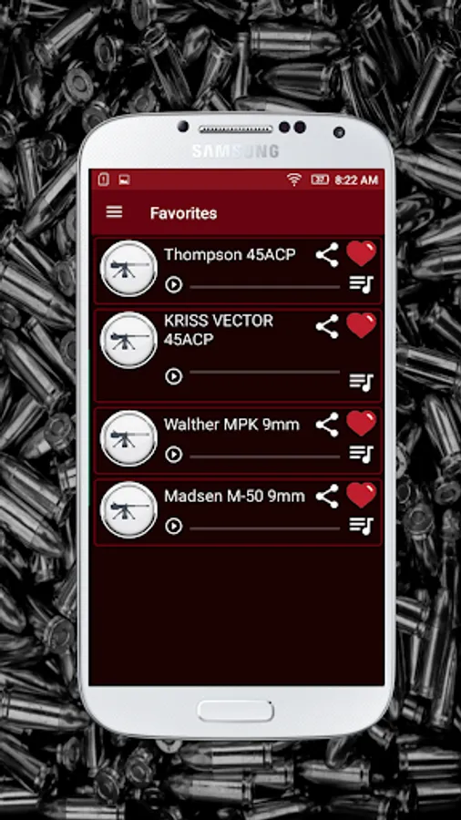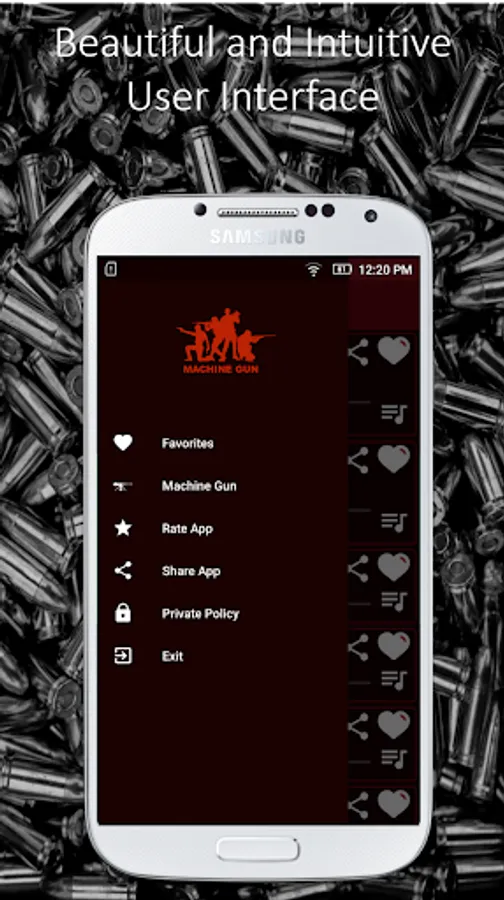 Real Machine Gun Sounds app offers you large collection shots sounds from different types of guns and weapons.