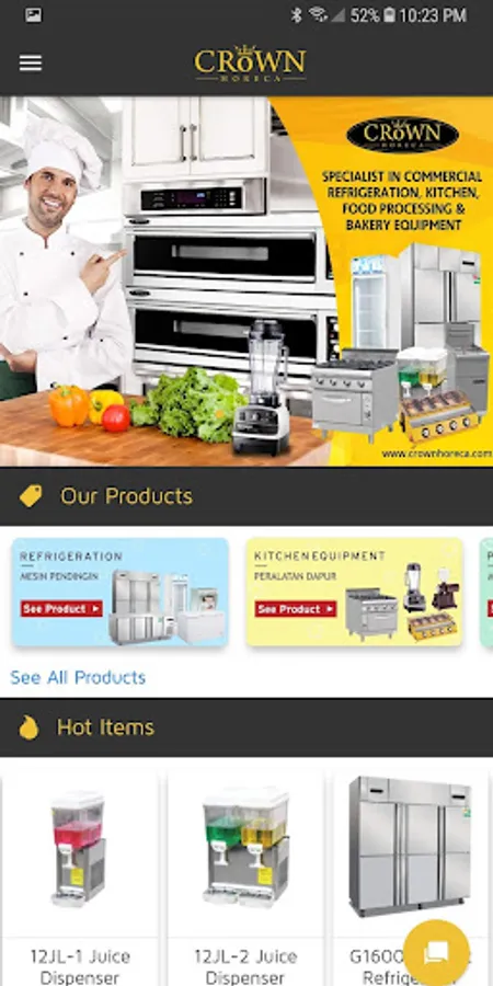 This application displays the products sold by the Crown Horeca. Such as chest freezer, showcase drinks, undercounter, upright, fryer, stove - stove, mixer, oven, and much more.
