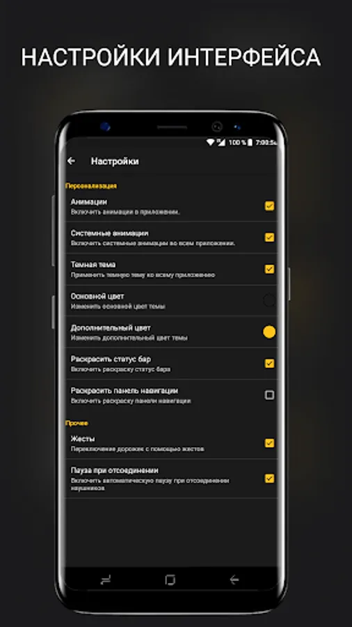 - Support for notifications: show album cover, album and artist name, playback control (ICS only and above): play / pause, next track and stop in the notification panel.