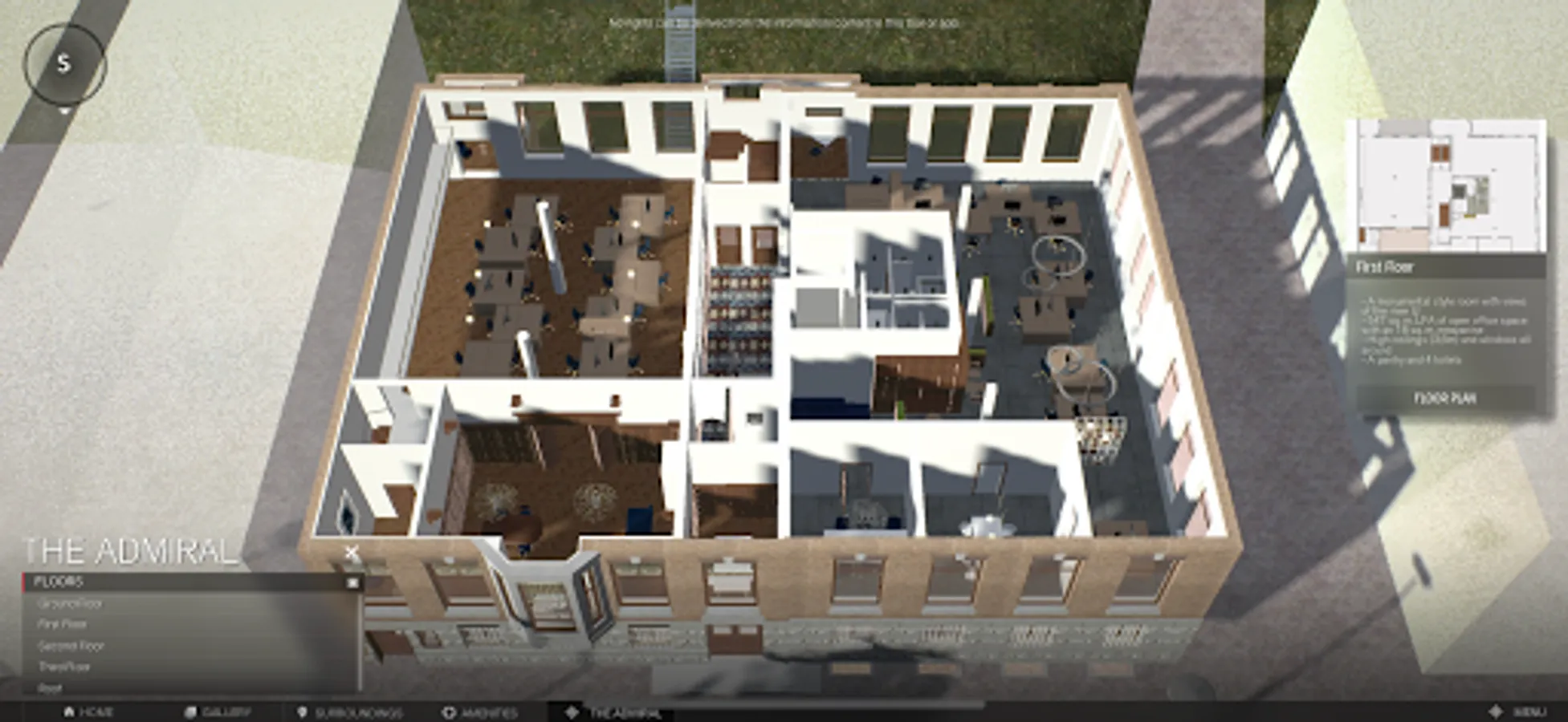 The Admiral and its surroundings are now accessible in 3D, check out the floors and all the amenities in the near vicinity by scrolling through this custom made 3D model. Wander through the building and its surroundings.