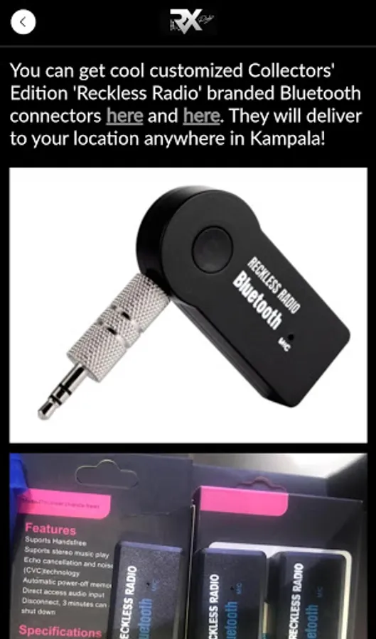 RX Radio (formerly Reckless Radio) is a Uganda-based digital radio station created by FM radio veteran James 'Fatboy' Onen that aims to serve the needs of a growing class of media consumers who are looking for high quality radio content.