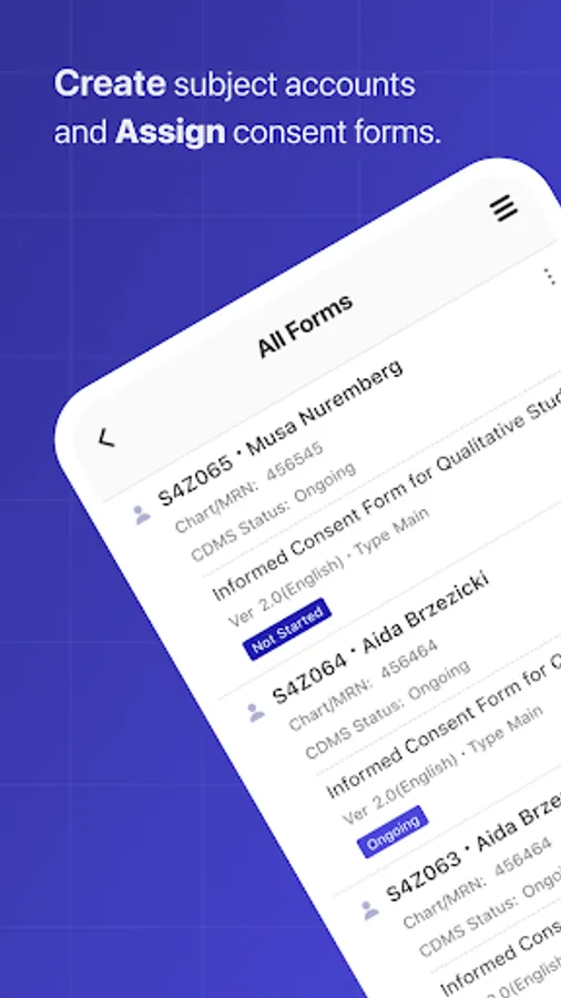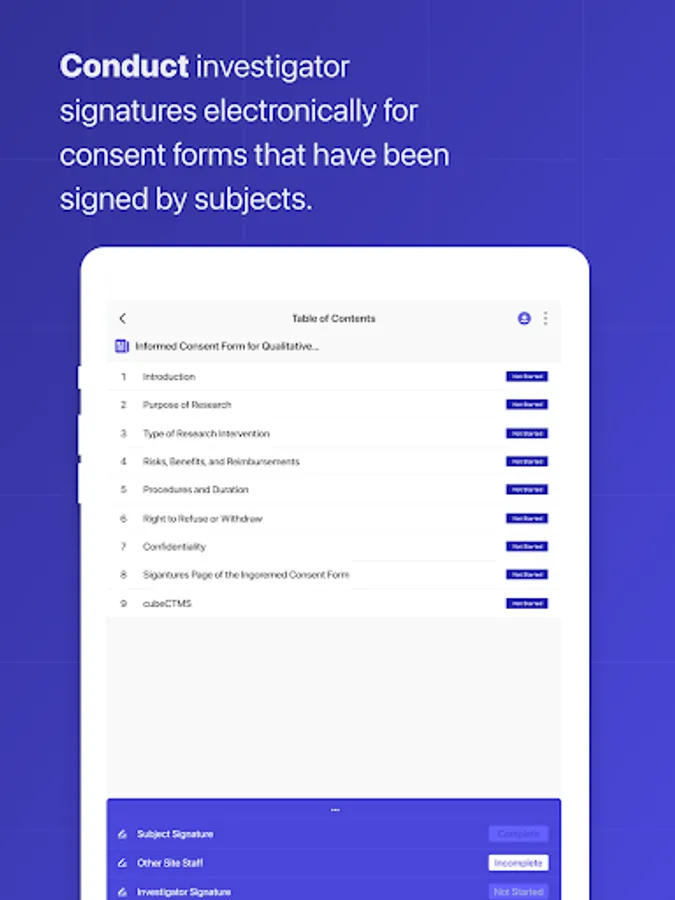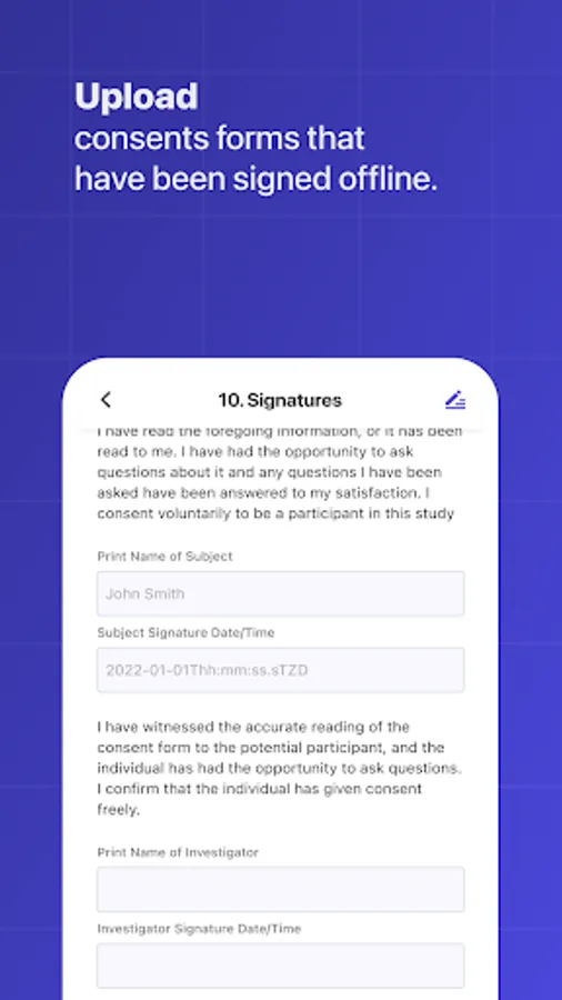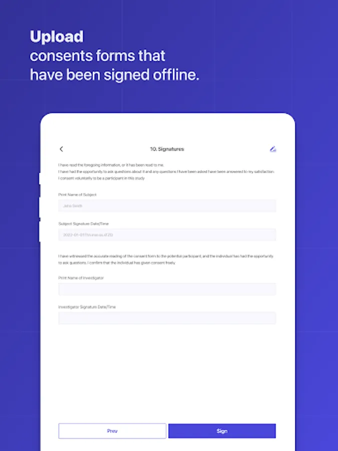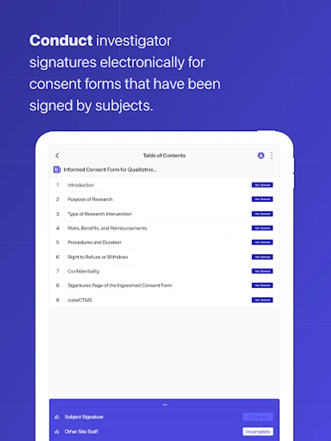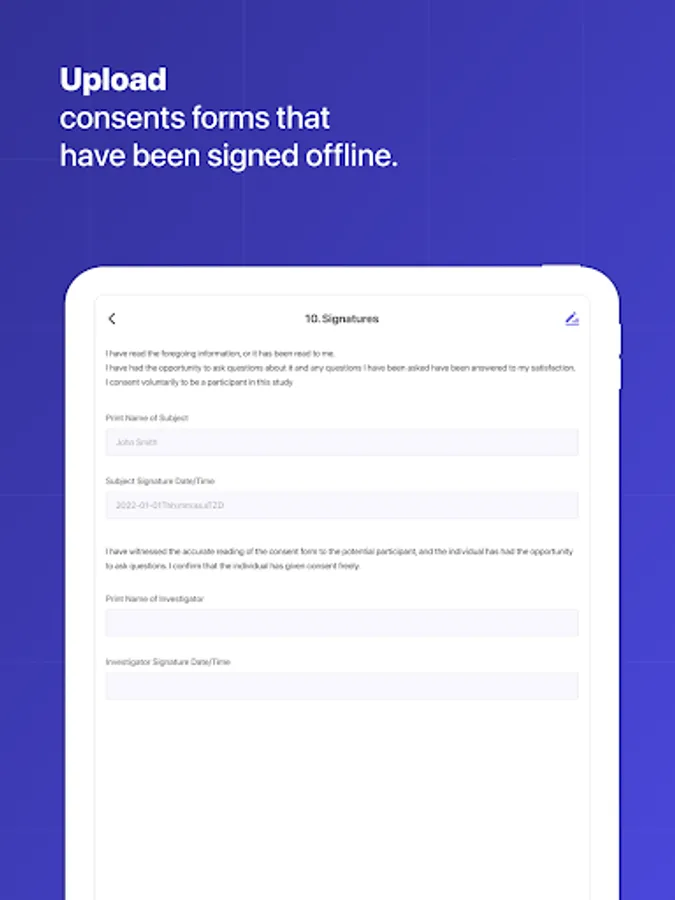 - Manage all aspects of your study's informed consent process electronically on your mobile phone.
