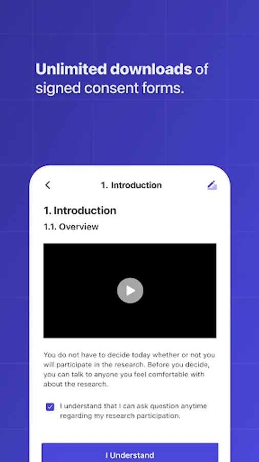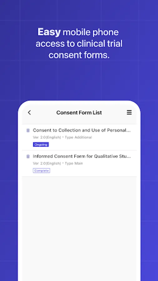 cubeCONSENT 3.0 - For Subjects Screenshots