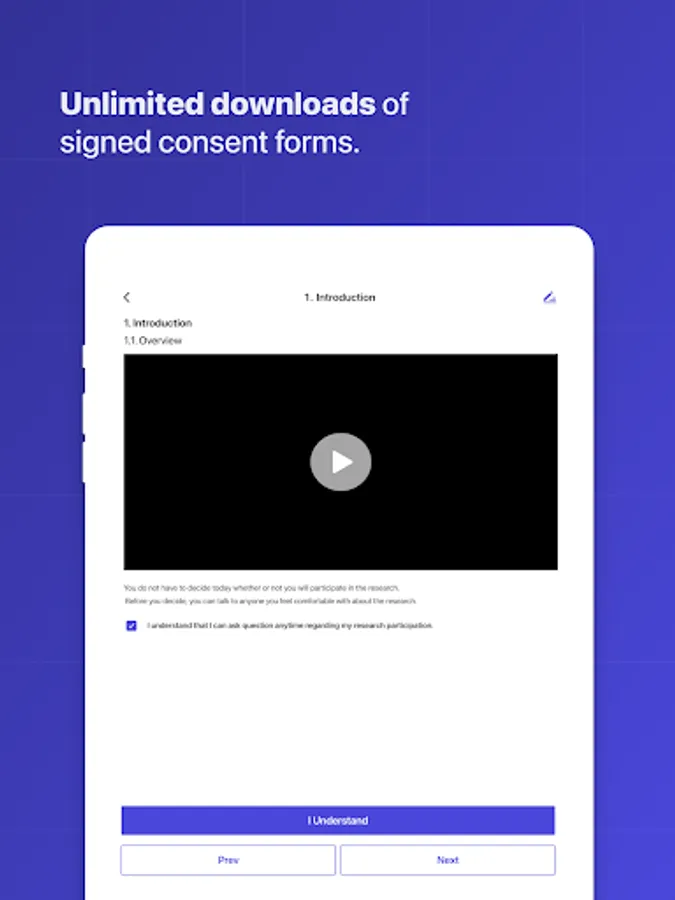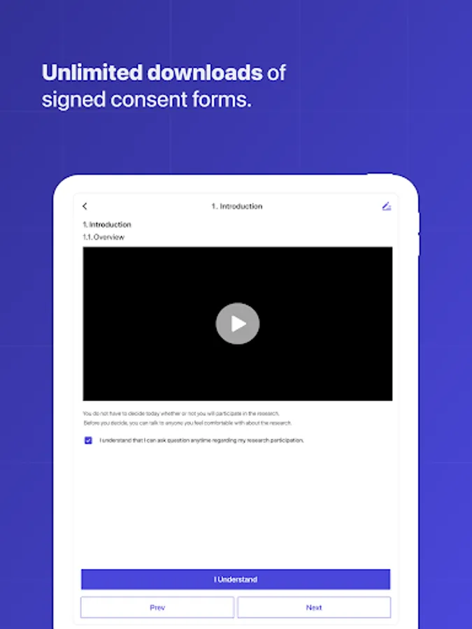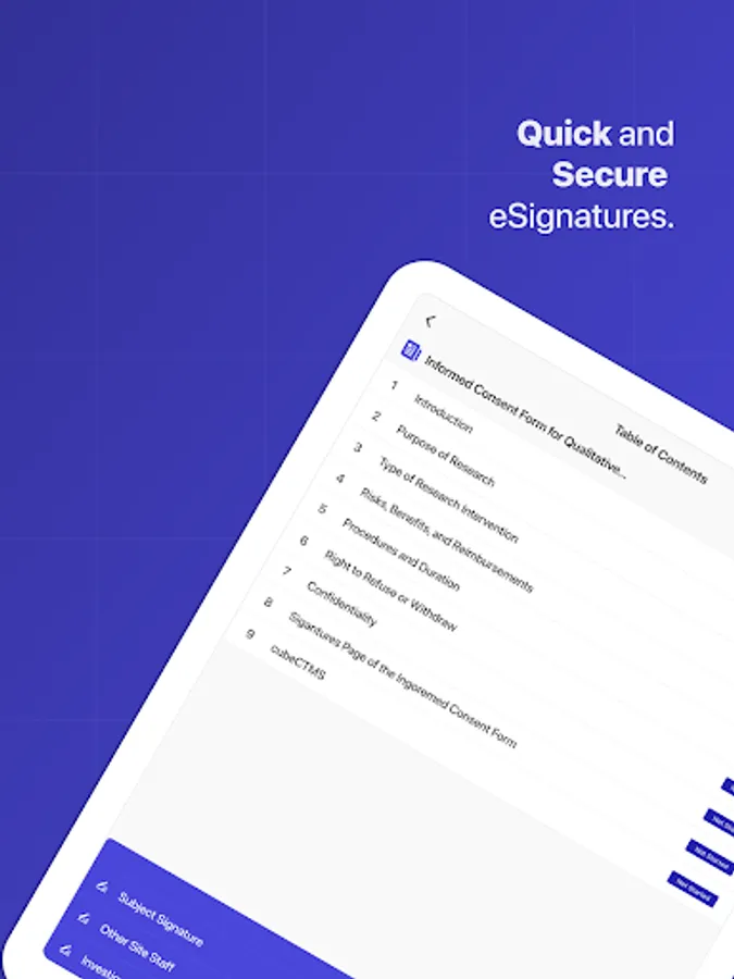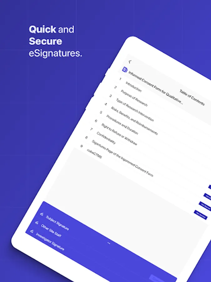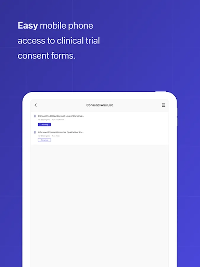 - Easy mobile phone access to clinical trial consent forms.