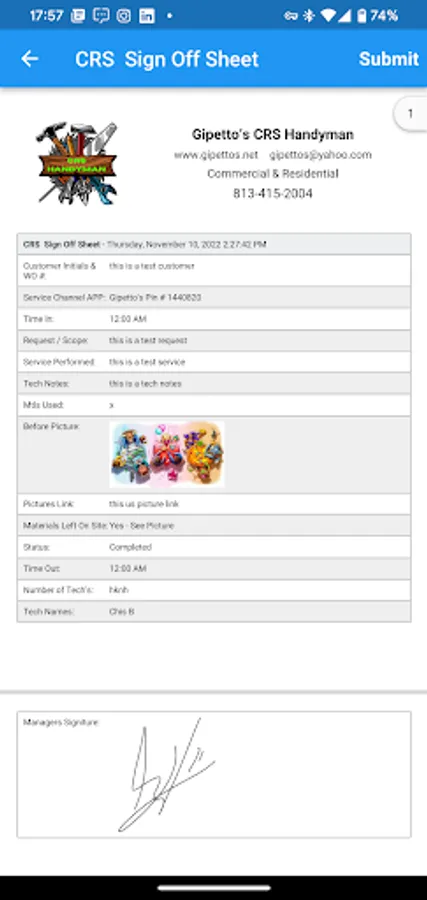 CRS Handyman is an application that allows our users to fill out some pre-defined forms and receive the form as a pdf in their mailbox.