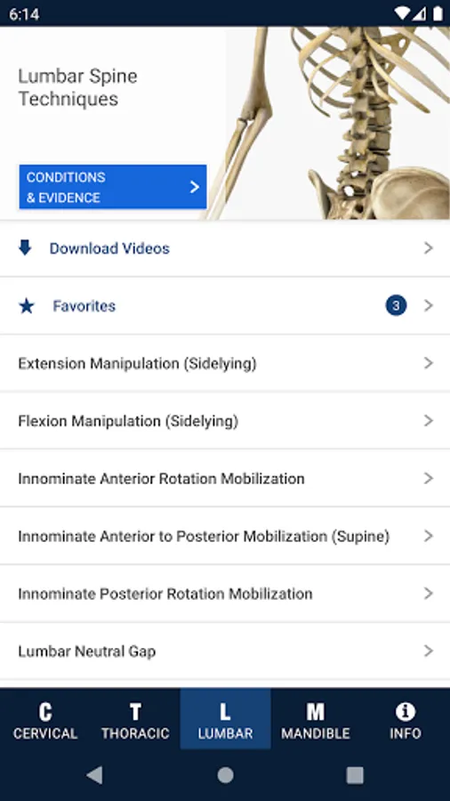 MOBILE OMT for the SPINE is a powerful clinical reference and teaching tool for any student, clinician or educator involved in the practice or the teaching of manipulative/manual therapy for musculoskeletal disorders. A comprehensive mobile companion providing manipulative techniques for the cervical, thoracic, and lumbar spine presented in the context of best current evidence for use in treating spine disorders. Step by step written instructions, high-quality video demonstration with audio, indications for use, and evidence to support each technique.