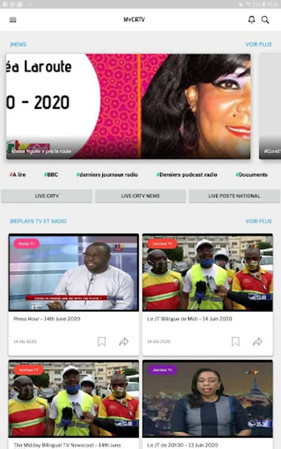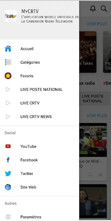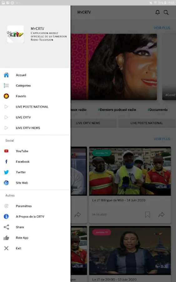 Cameroon Radio Television is featured on the PlayStore through MyCRTV. Its Unique Official Mobile Application on this Store. In this version 2.0 of the application, you will find the following functionalities: