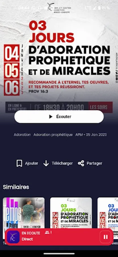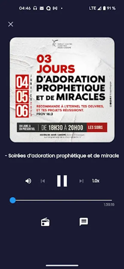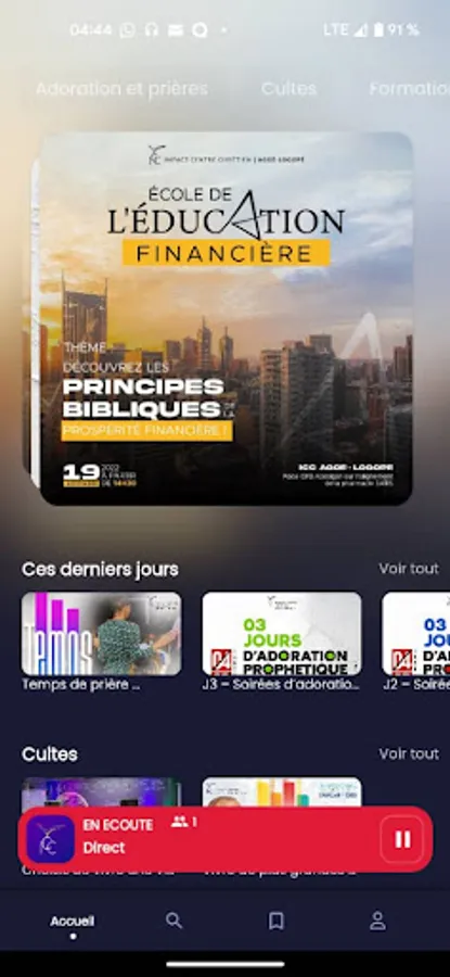 You will find in this application, the times of prayer, the cults, the formations of the church Impact Christian Center of Agoè-Logopé (Lomé), as well as live broadcasts on our web radio.