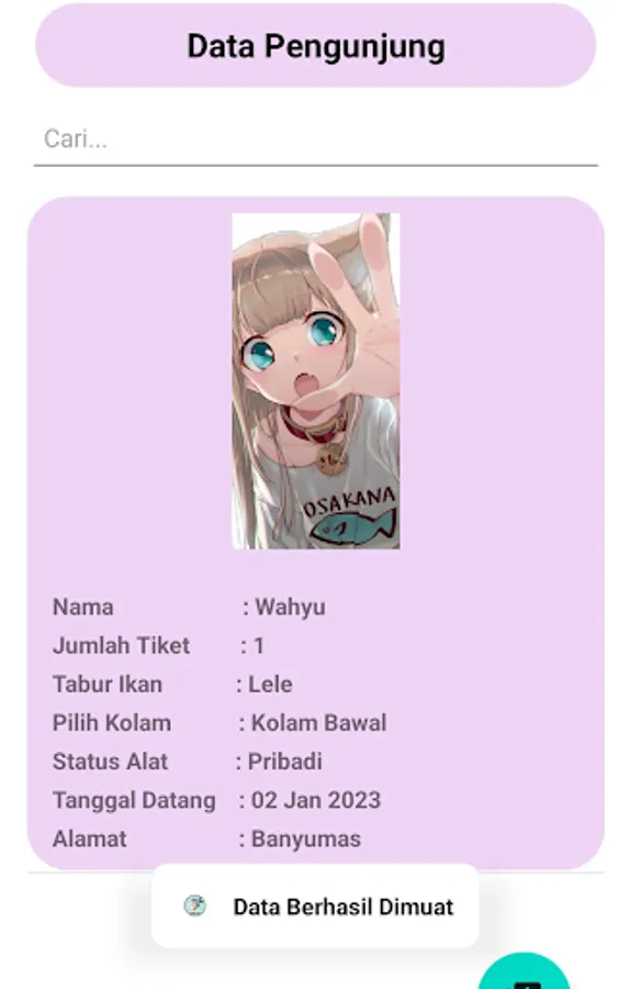 Data collection application for visitors who come to fishing ponds and data collection of tools, ponds, pool employees and pool owners