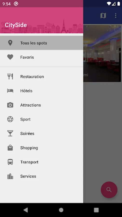 The goal of CitySide is to offer its users a comfortable and intelligent user experience. Thanks to CitySide you will have the possibility of geolocating yourself and geolocating activities to do around you! CitySide also includes a system that will allow you to access the activity selected by the option of a map!