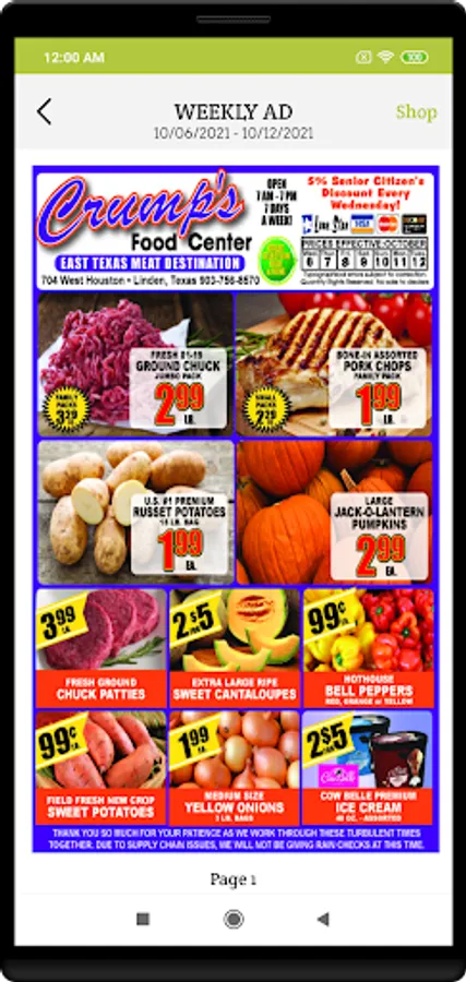 The Crump’s Food Center rewards App is the easiest way our loyal shoppers can receive extra saving every time they shop and NOW place an online order! It’s easy to use, log in or register for an account, add coupons to your App Cart and scan your Crump’s Food Center App barcode at the registers to earn points and redeem your coupon(s). To order your groceries online, simply add the items to your cart on the App or website, all items with available coupons will apply, select the time you desire for pick-up, and confirm your payment method. Order your groceries online NOW with Crump’s Food Center App!
