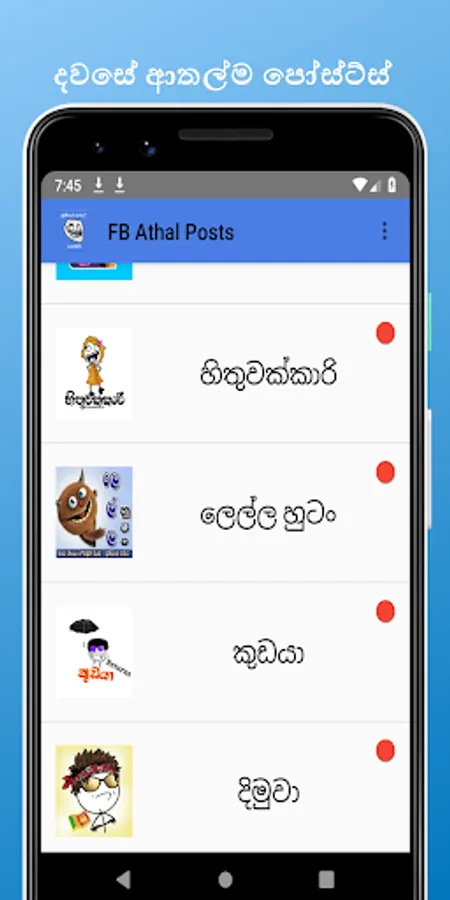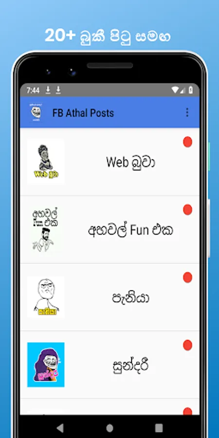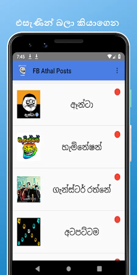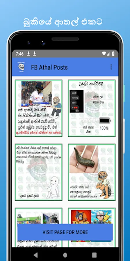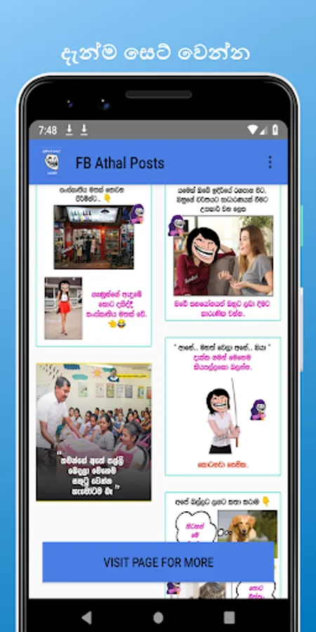 fb account තිබ්බත් නැතත් බුකියෙ ආතල් කියවල බලලා රස විඳින්න මේක තමයි කියාපු ඇප් එක. දැනට Pages 20කට වඩා ප්රමාණයකින් උපුටා ගන්නා Posts ඒවා Publish කරන මොහොතෙම මේ ඇප් එකෙන් බලා කියා ගන්න පුළුවන්.