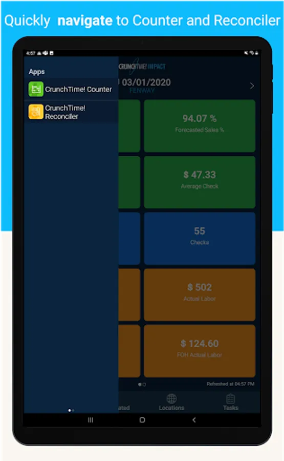 Configure push notifications for upcoming or overdue restaurant tasks - and now you can navigate directly to Counter or Reconciler to complete them! Just enter your Crunchtime Net-Chef™ URL on the app’s configuration screen and get right to work using your existing Net-Chef credentials.