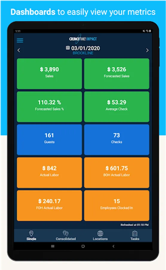 Monitor restaurant sales, food and labor costs, guest counts, labor costs, and so much more. Track real-time performance from the consolidated brand level down to each location. Quickly detect high-achievers and under-performers.
