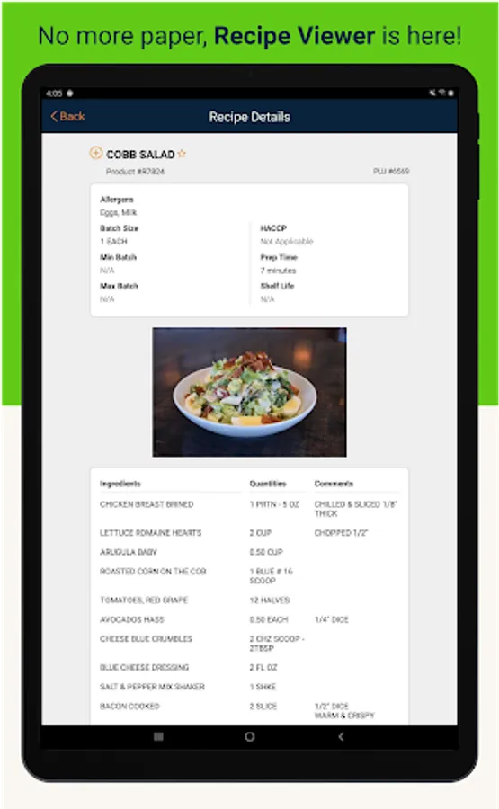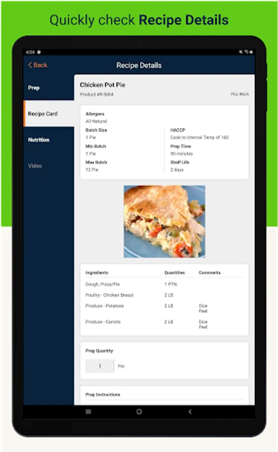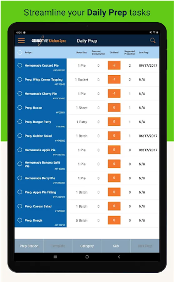 Kitchen Sync seamlessly connects the prep staff’s activities directly to the Crunchtime back office system, immediately updating inventory levels that can trigger prep and purchasing alerts. Kitchen Sync displays recipe information, production instructions, plating instructions, recipe pictures, video, cost information, and nutritional and allergen information.