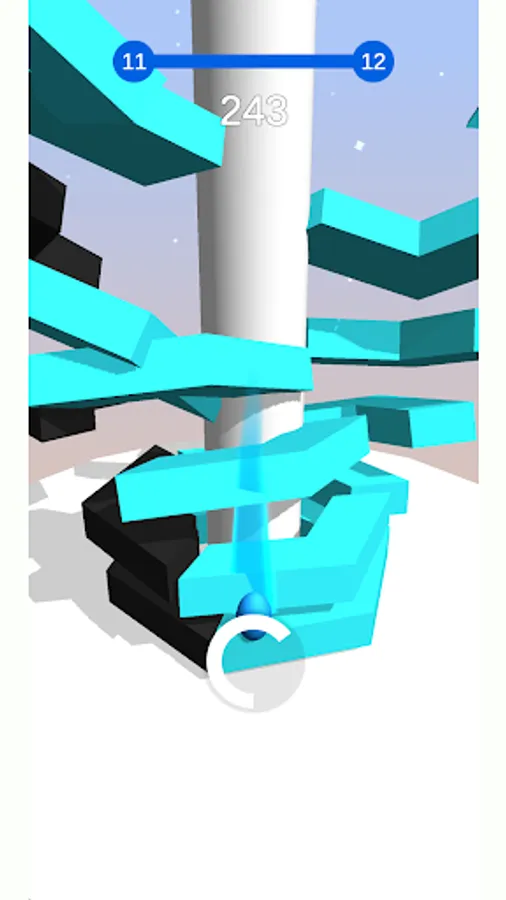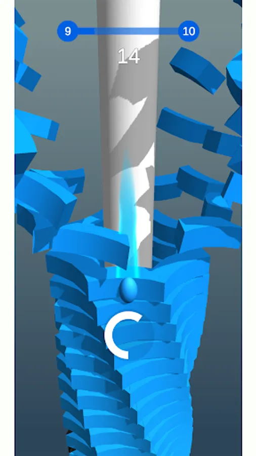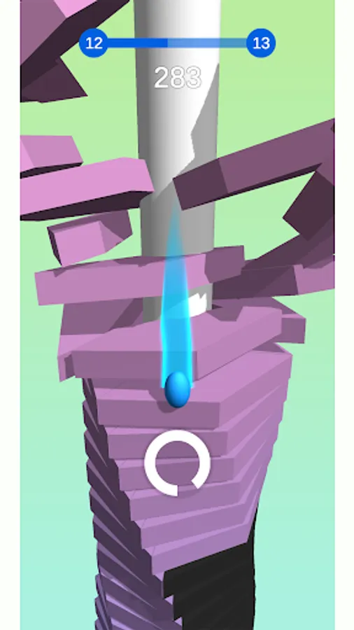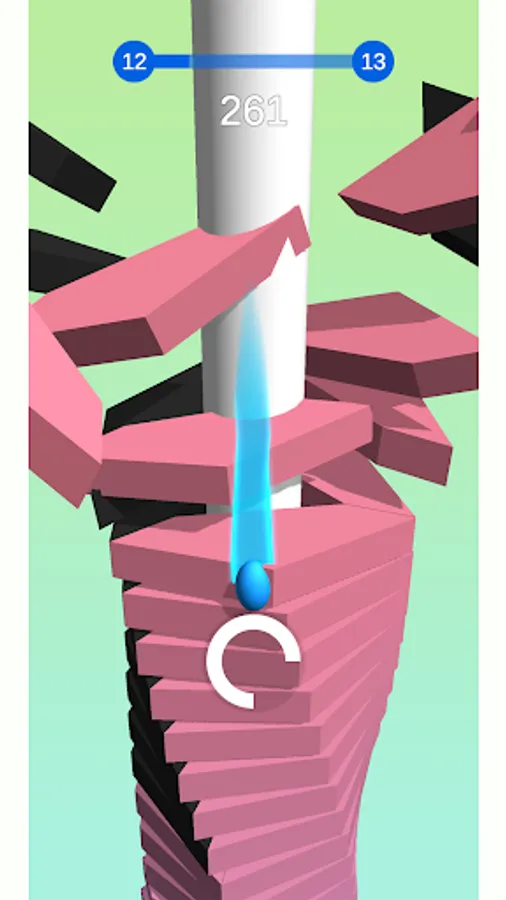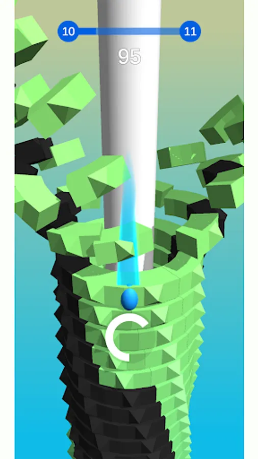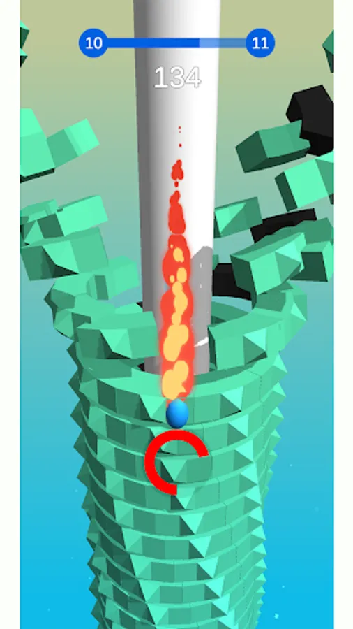 The jumping ball crushes through the stacks to the bottom of the revolving helix tower!