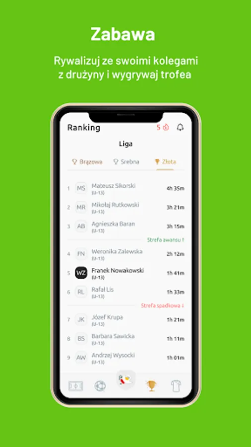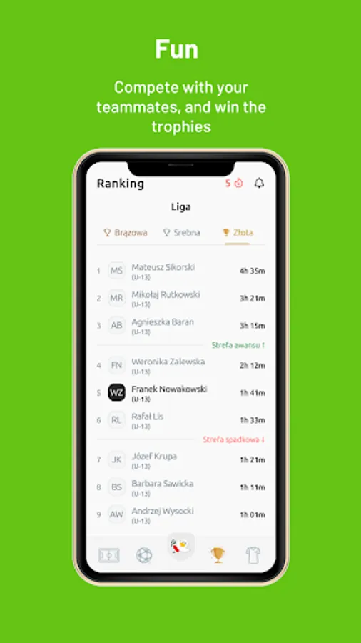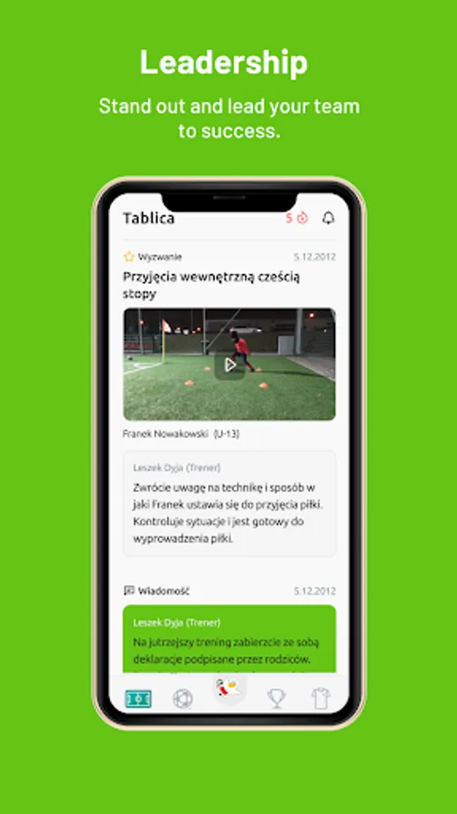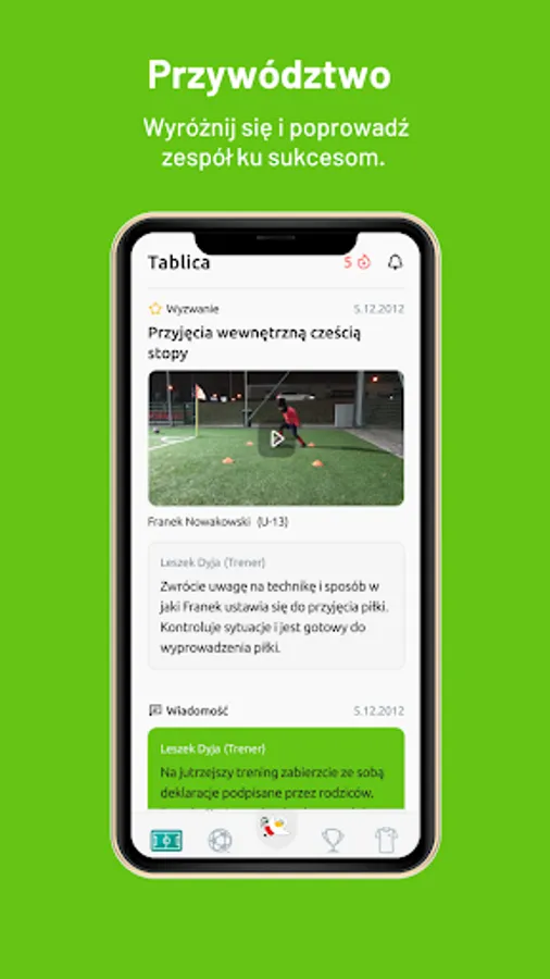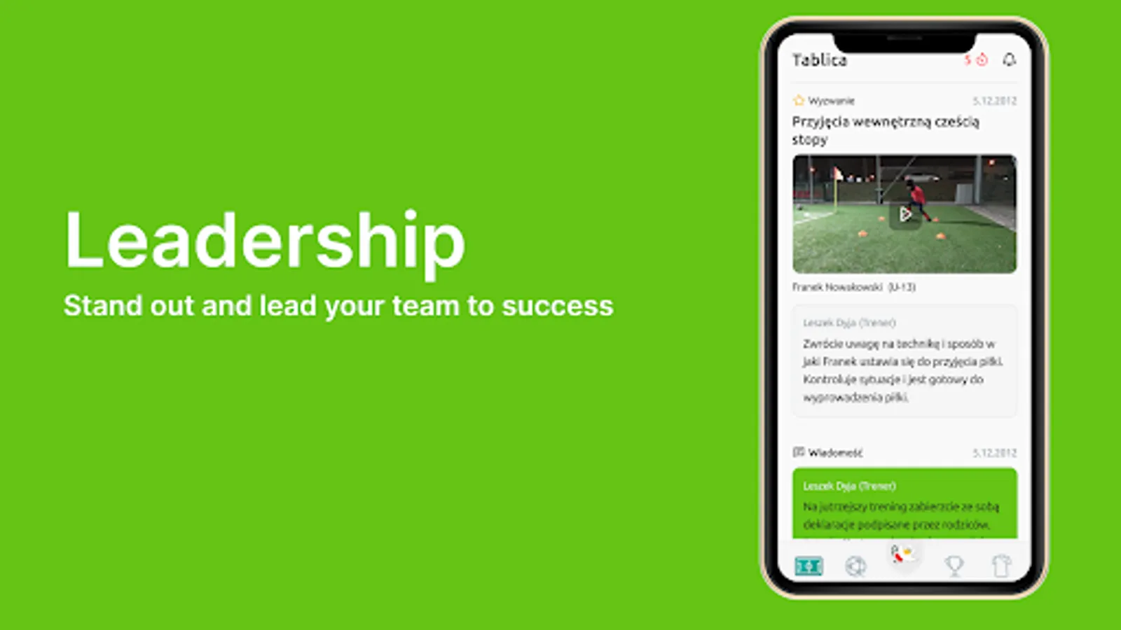 - grywalizacja- dzięki aplikacji zwiększysz zaangażowanie Twoich podopiecznych w trening. Pozwól im zamienić mało produktywny czas spędzony w smartfonach na piłkarski rozwój na najwyższym poziomie.