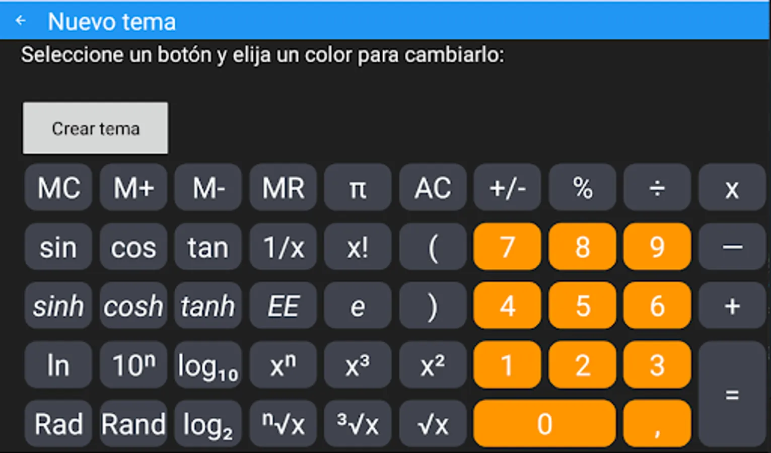 Selection of different themes and colors.