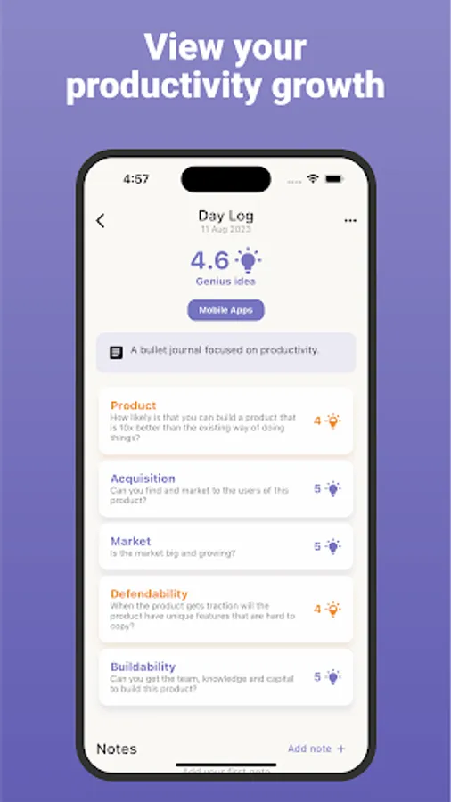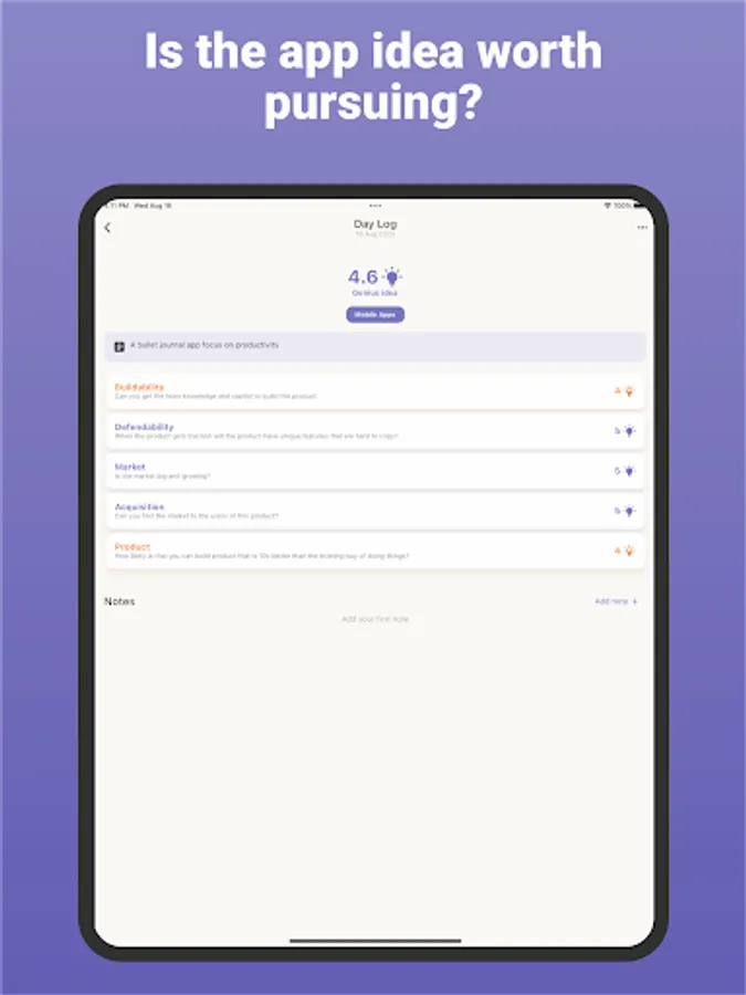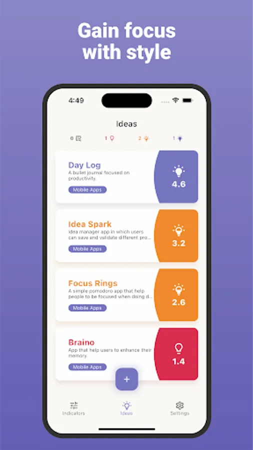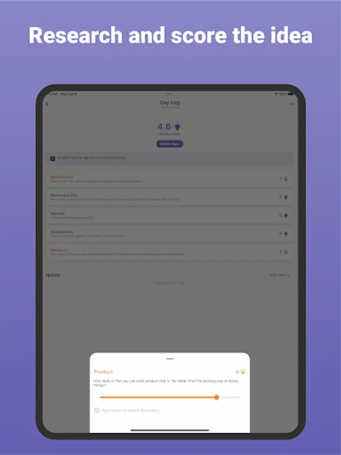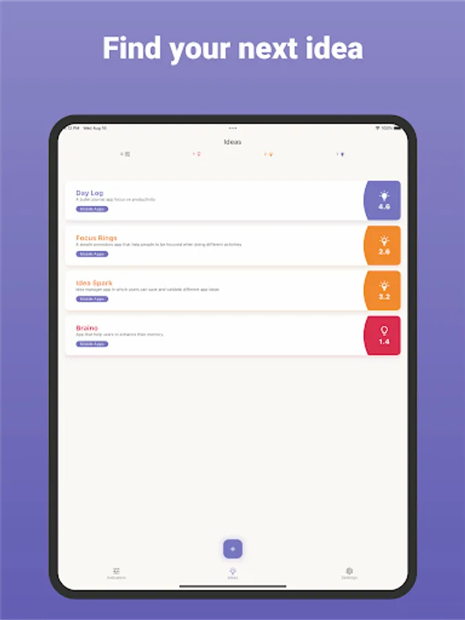 Overcome idea paralysis and confidently select your next venture by leveraging data-driven insights and the app's scoring system.