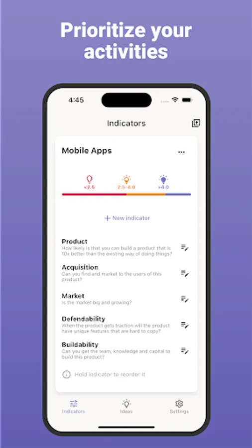 Idea Spark introduces a revolutionary way to evaluate your ideas. Assign indicators such as monetization potential, virality, market need, and more.