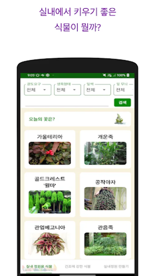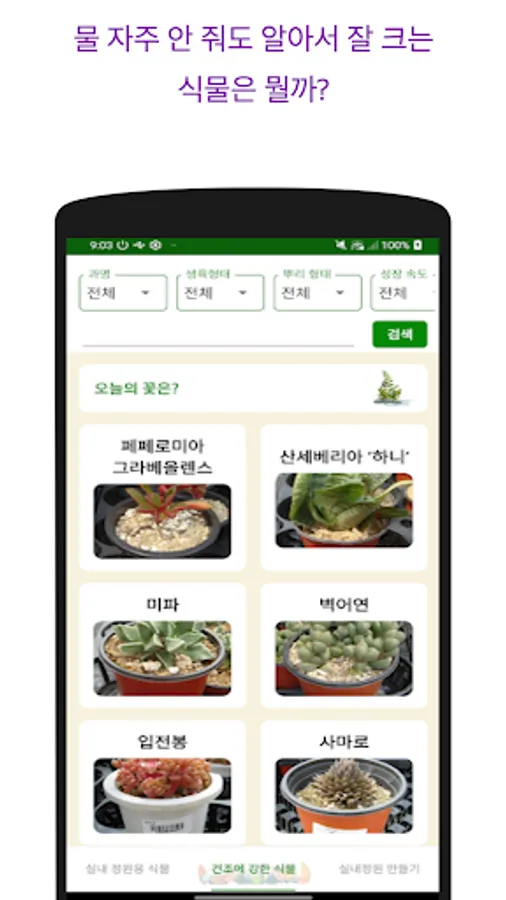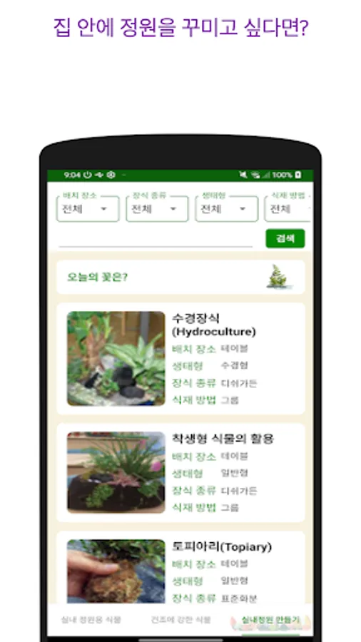 It provides information on the flower of the day that changes every day, a list of plants that are good to grow indoors, a list of plants that grow well in dry environments, and information on decorating indoor gardens.