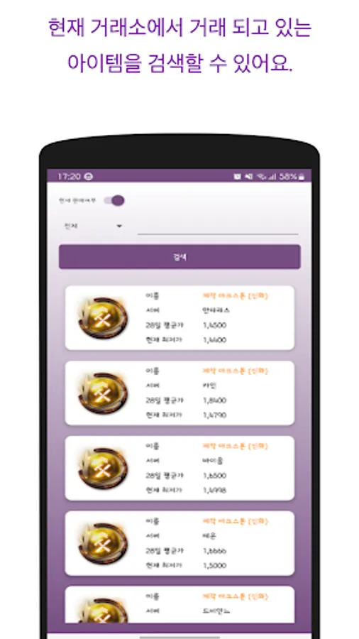 - You can search the price of items by server.