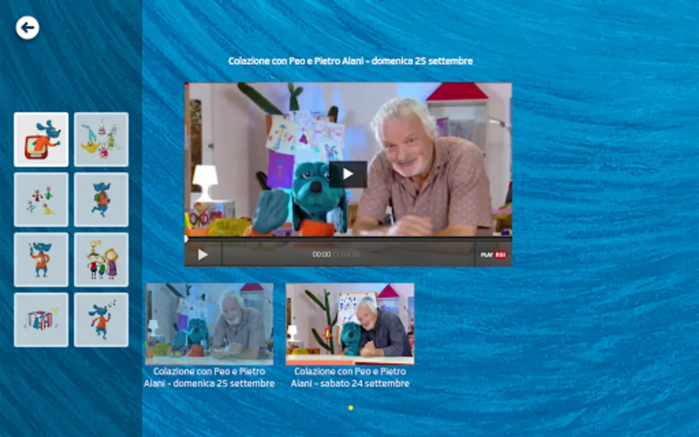 The Peo dog, the protagonist of children's programs of Radiotelevisione Svizzera in Italian, opens the doors of his world with an app full of surprises!