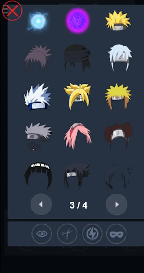Access the variety of eye color types, resize, rotate, and drag around where you want your anime eyes to go! Grab various anime ninja hairstyles as well!