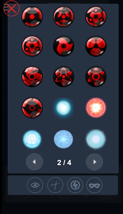 ★ 25 Different eye styles to choose from ranging from Sharingan, Rinnegan, sage mode, byakugan, and mangekyou