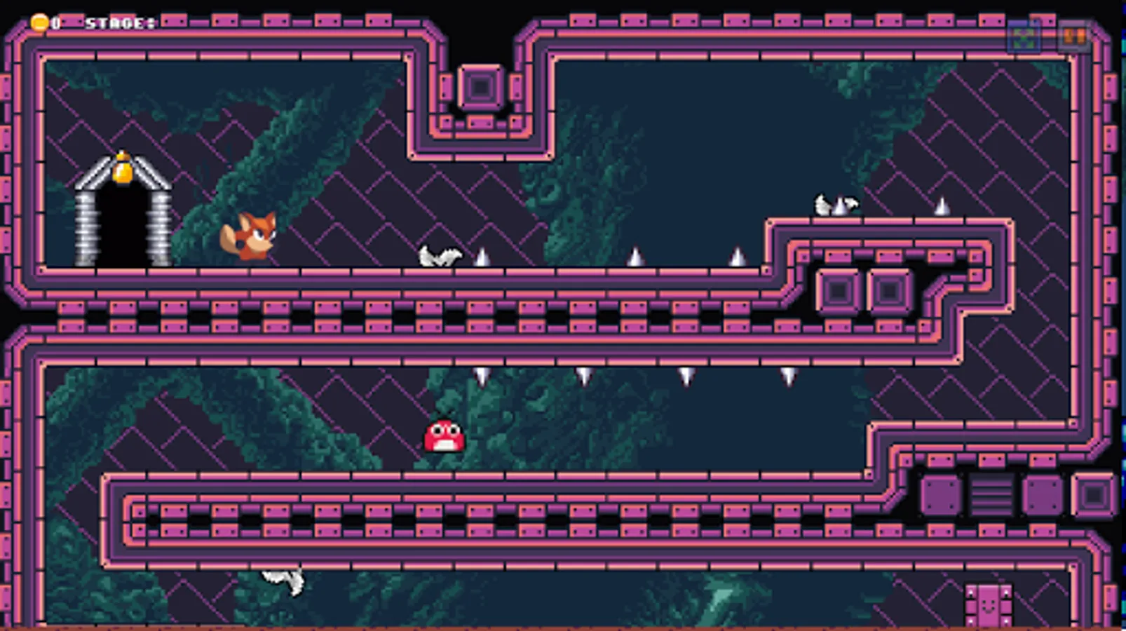 Pass through various puzzles, enemies, and platforms as the Stellar Fast Fox! Use Fast fox's handy blaster to shoot down enemies that come your way. Over 20 levels of old-school arcade action! Maps each with their own designs and settings.