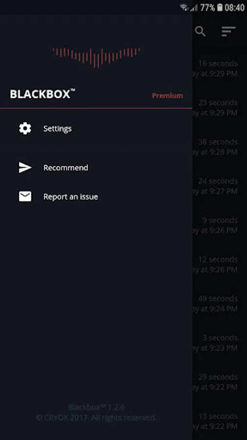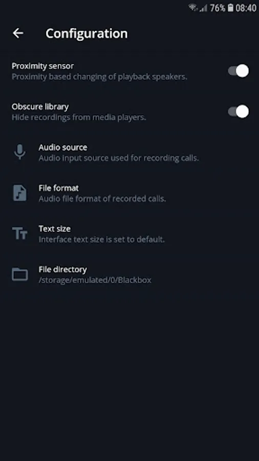 Users must be aware and comply with call recording laws and regulations in their respective countries in order to avoid any violation of local or international laws. By using Blackbox™ the user accepts the notification above and agrees that the developer carries no responsibility for abuse or misuse of the application by the user.