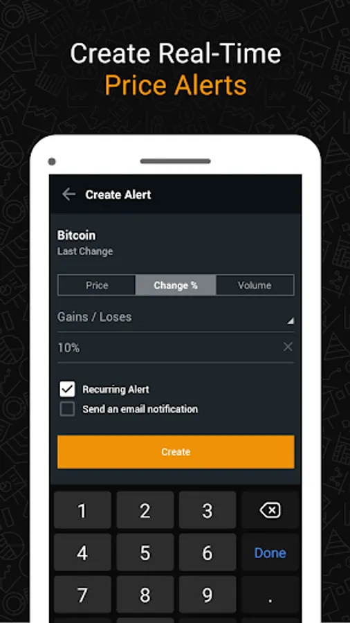 Use alerts to immediately get notified when the price crosses a certain threshold. Set customized price alerts for your selected economic events. Keep track of significant price changes for your virtual currencies and digital assets.