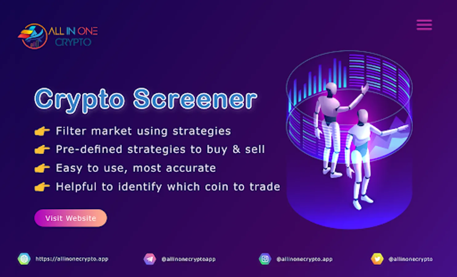 Trading is all about entry and exit with profit. Now never miss an opportunity to buy and sell at right time with All In One Crypto App Screener.