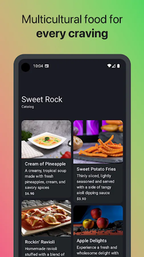 Satisfy your food ordering cravings with Sweet Rock! Our app offers a wide variety of cuisines curated by our team of food experts, from classic comfort foods to trendy fusion dishes. Order mouth-watering dishes from our multicultural menu to your heart's content without spending a cent!