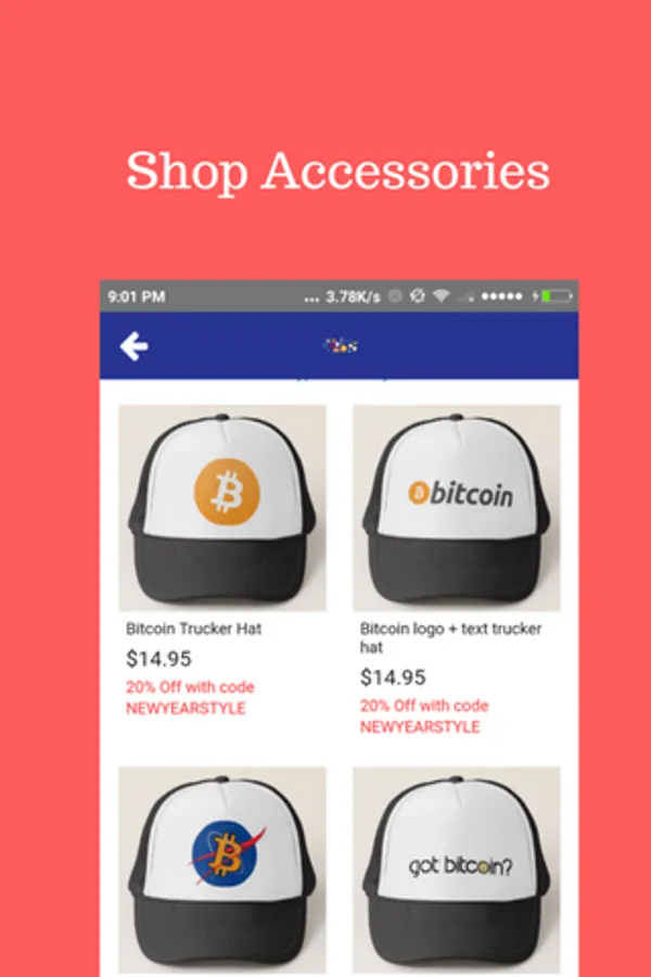 If you love bitcoin hoodies, mugs, accessories, you can buy them through the app.