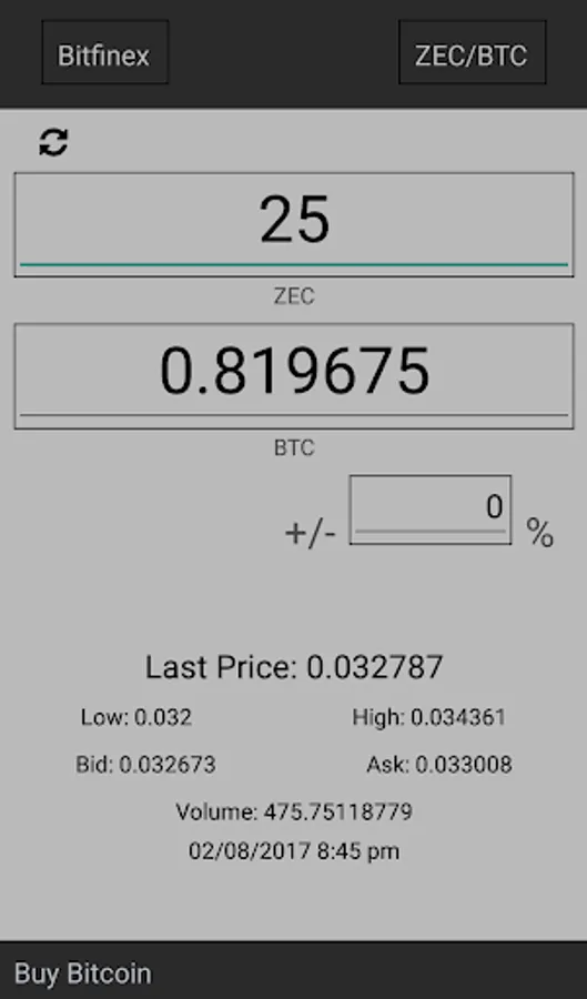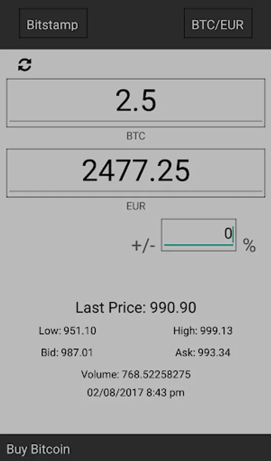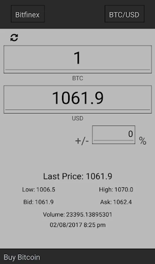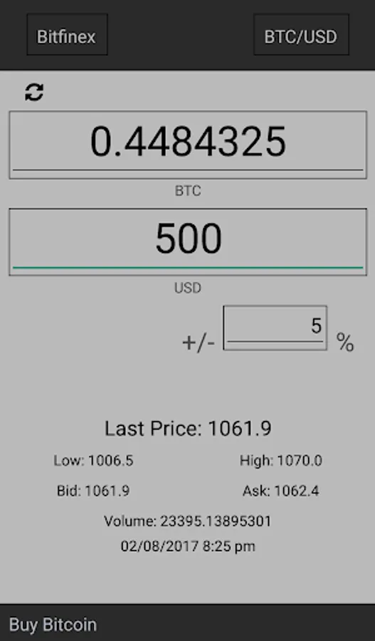 View conversions instantly. Enter a USD amount and the Bitcoin field will automatically update. Edit the Bitcoin field and the dollar field will immediately renew.