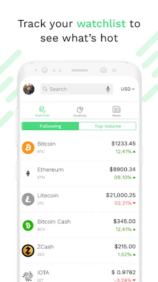 Multiple portfolios – manage and keep track of your bitcoin and altcoin holdings, with accurate statistics, price changes and profit/loss information. You can have as many portfolios as you want for different crypto assets that you might hold.