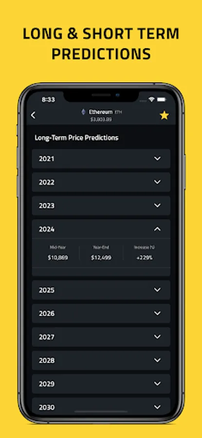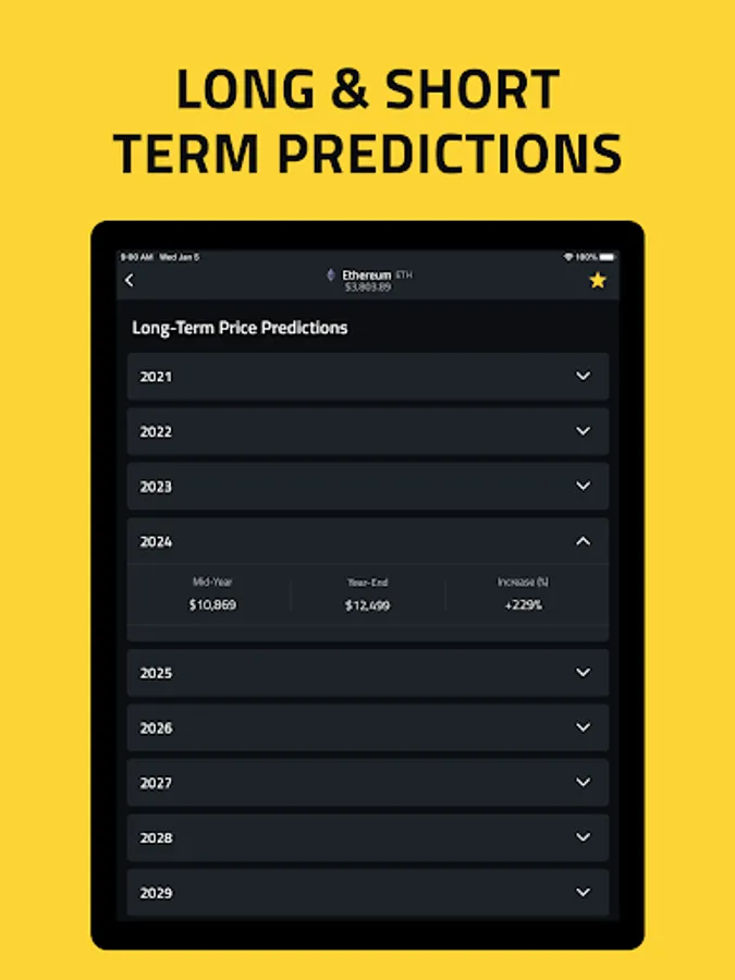 The long-term crypto price predictions are showing the prices for each year divided into two groups (mid-year and end-of-year price). Also, there is a section that will show you how much percentage, the cryptocurrency will be increased from today to the end of the year. The short-term crypto price predictions are simply showing predictions for today, tomorrow, next week, month, or few months into the future.