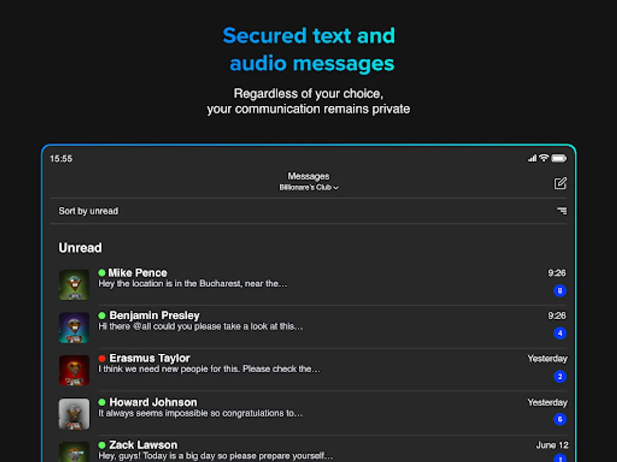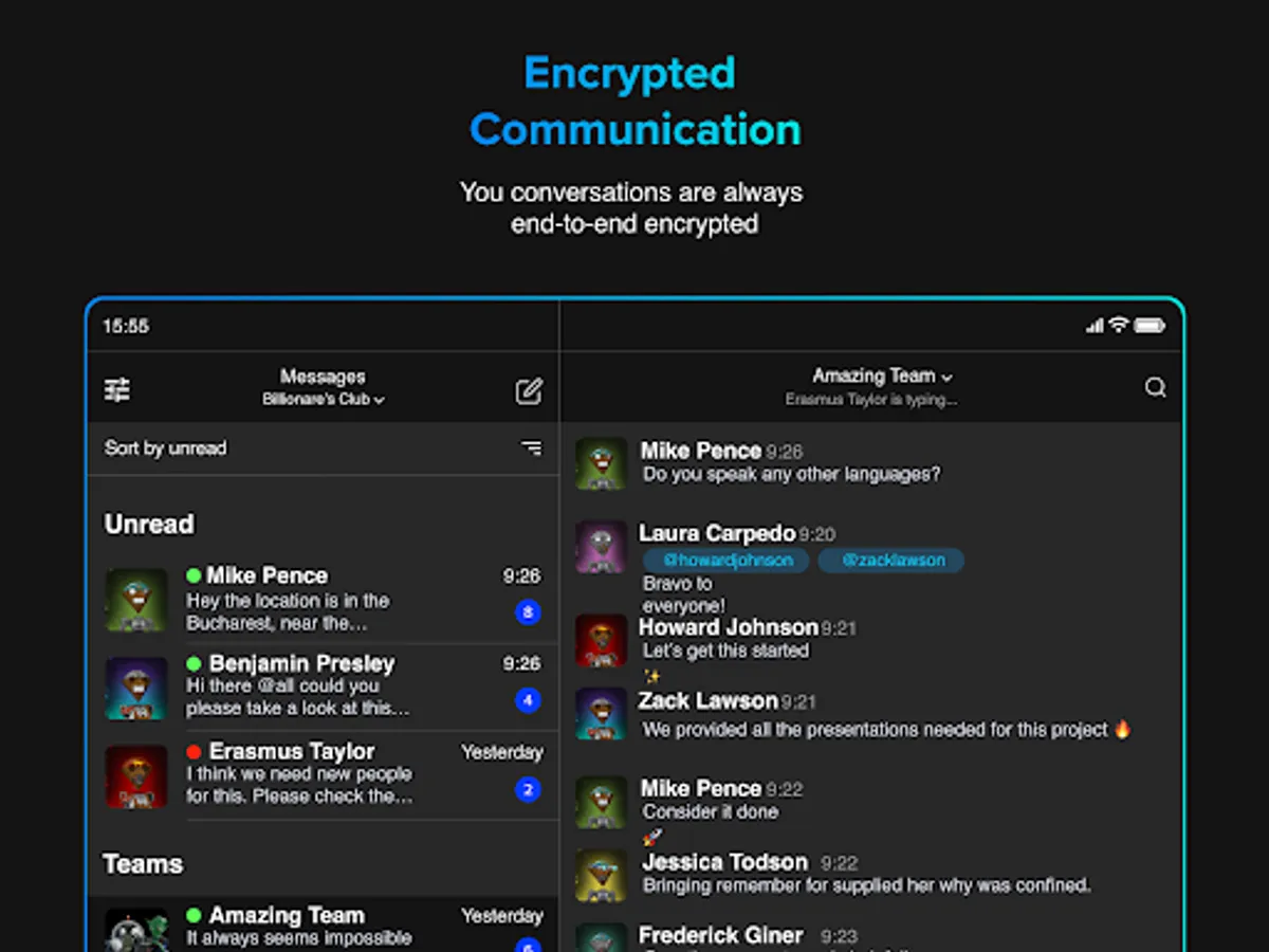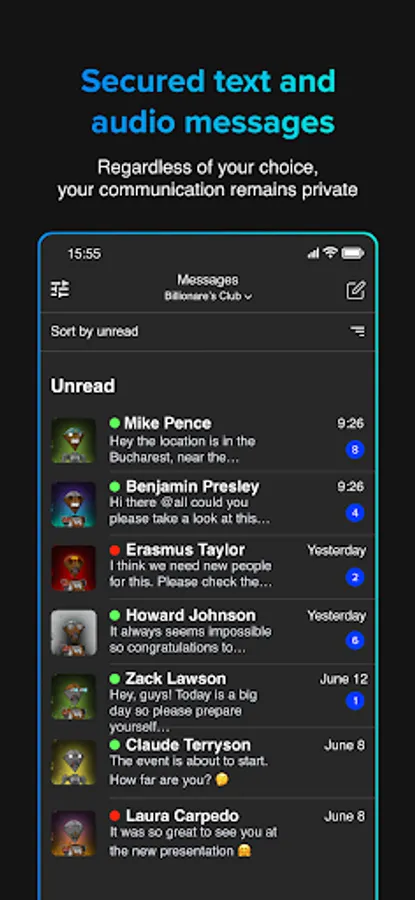 * Sort conversations alphabetically or group by activity, unread or favourites