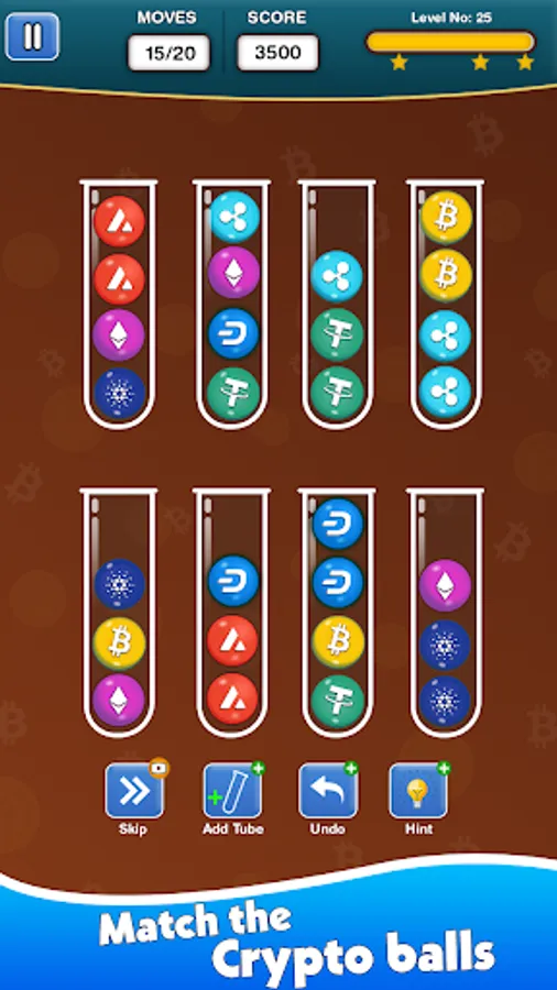 • Tap any tube to move the crypto coin lying on top of the tube to another tube.