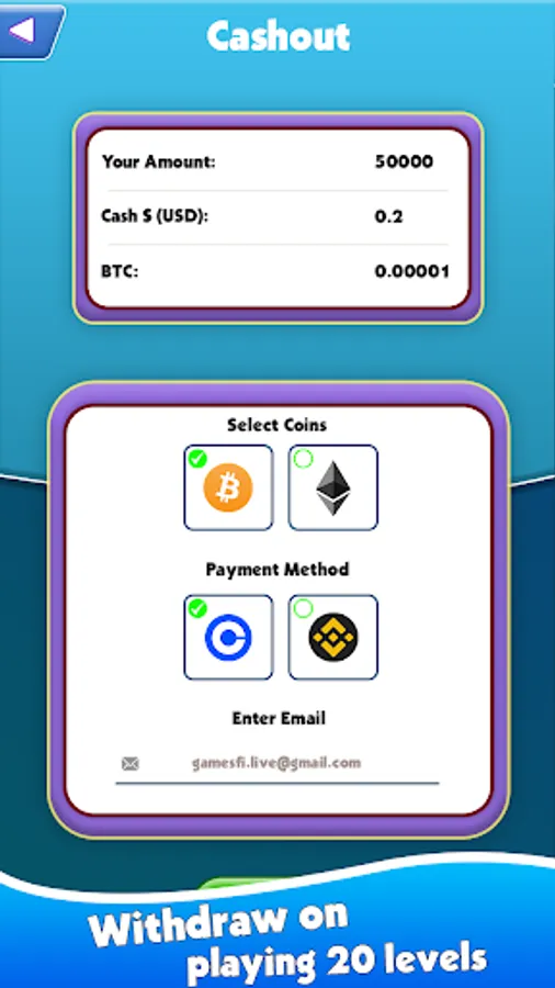 ✔ Complete the level and earn bitcoin in coinbase and binance.