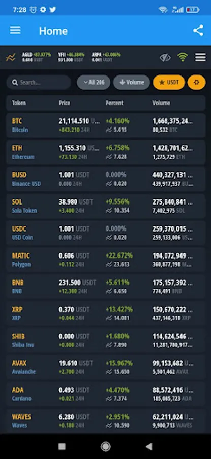 ✓ GLOBAL MARKET - Track global market data, including total market cap, volume, market shares, and more.
